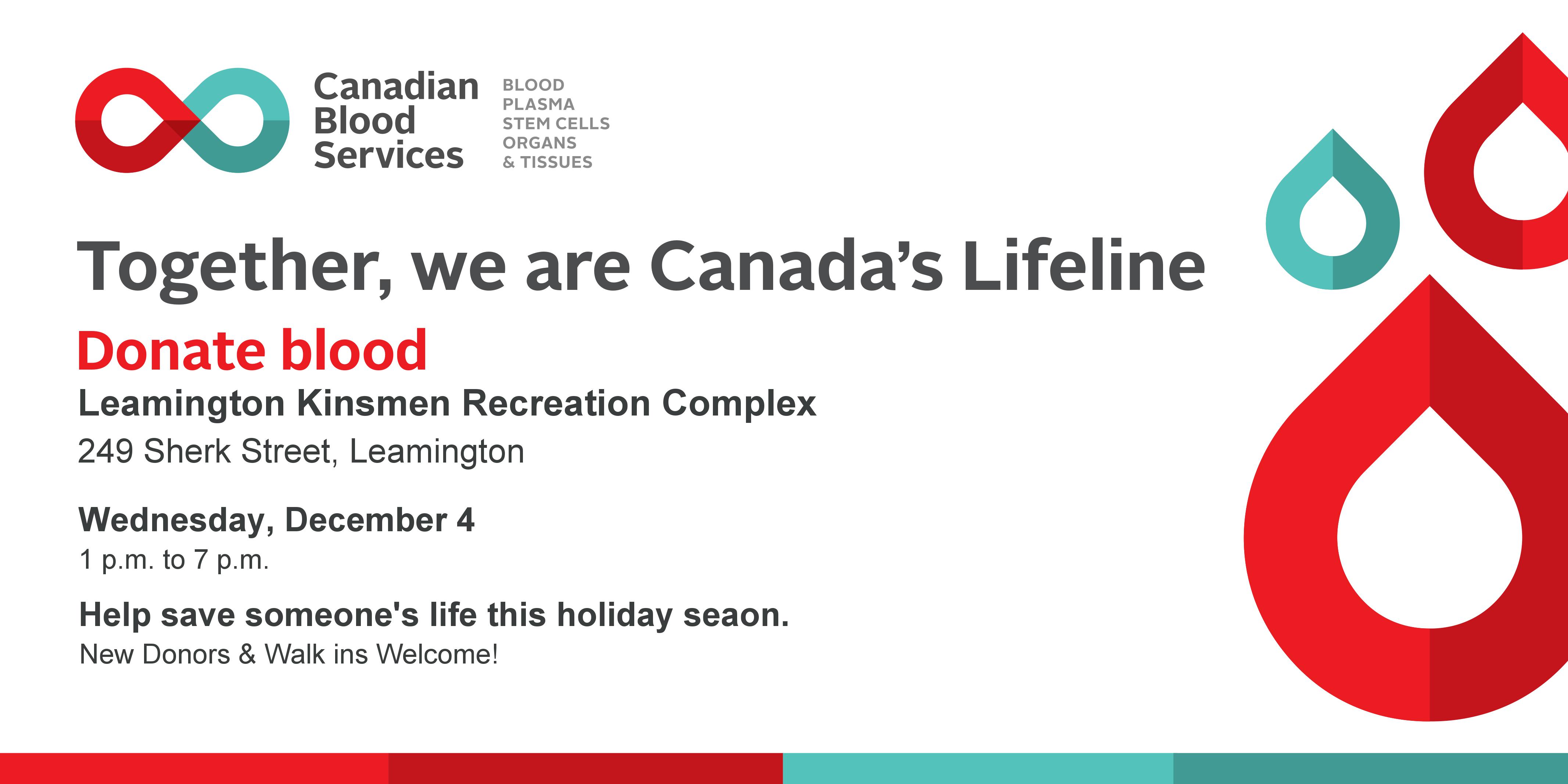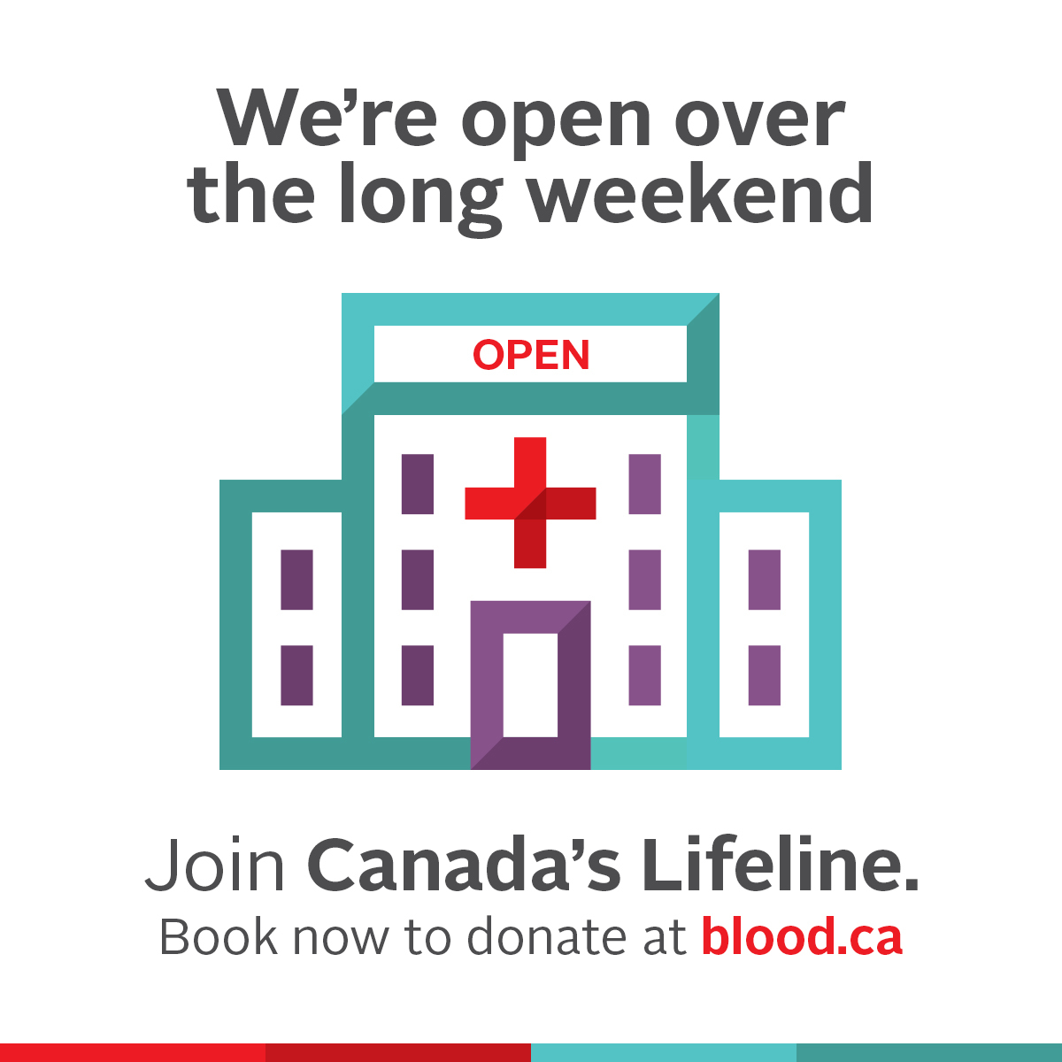 Canadian Blood Services Windsor is OPEN during the Civic Holiday long weekend.
